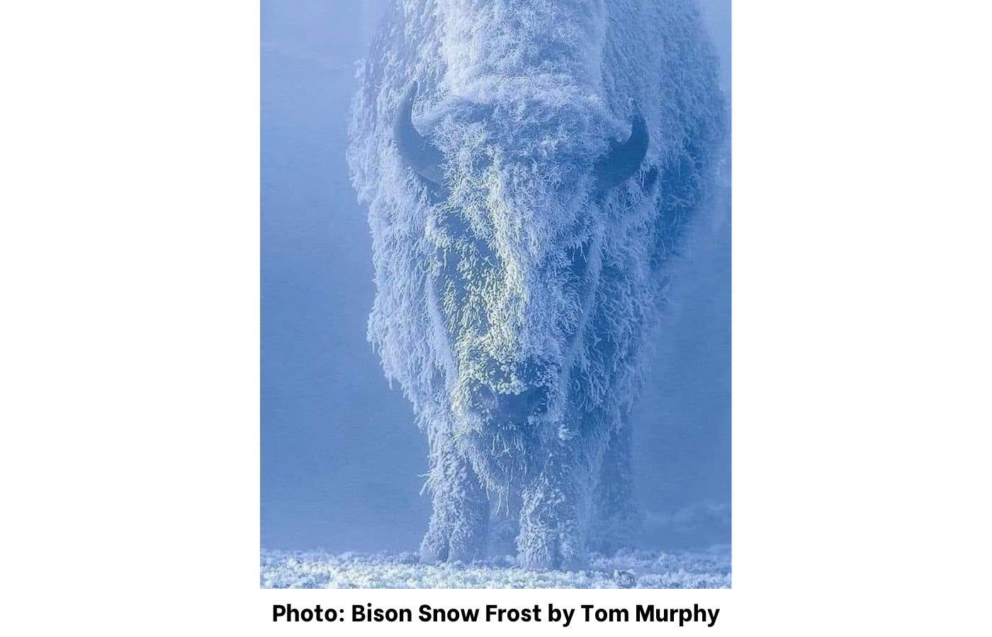 (“Bison are the only animal that turn and walk into a snowstorm rather than away from it because they instinctively know that walking into the storm will get them through the weather quicker.”)
